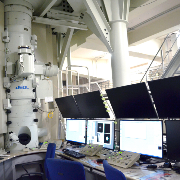 計測・分析分野では、超高圧反応科学走査透過電子頭微鏡をはじめとする最先端の電子顕微鏡群を用いて、金属、セラミックス、有機薄膜などの結晶構造解析、元素分析、電子状態解析、微小電磁場解析、3次元立体観察、ガス中および高温でのその場観察、また、低温ステージを搭載した電子顕微鏡による生体試料の形態学的、および、分子生物学的研究を支援します。データの解析、実験の進め方などについて担当教員がコンサルティングを行います。